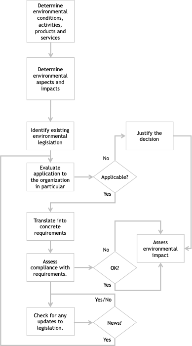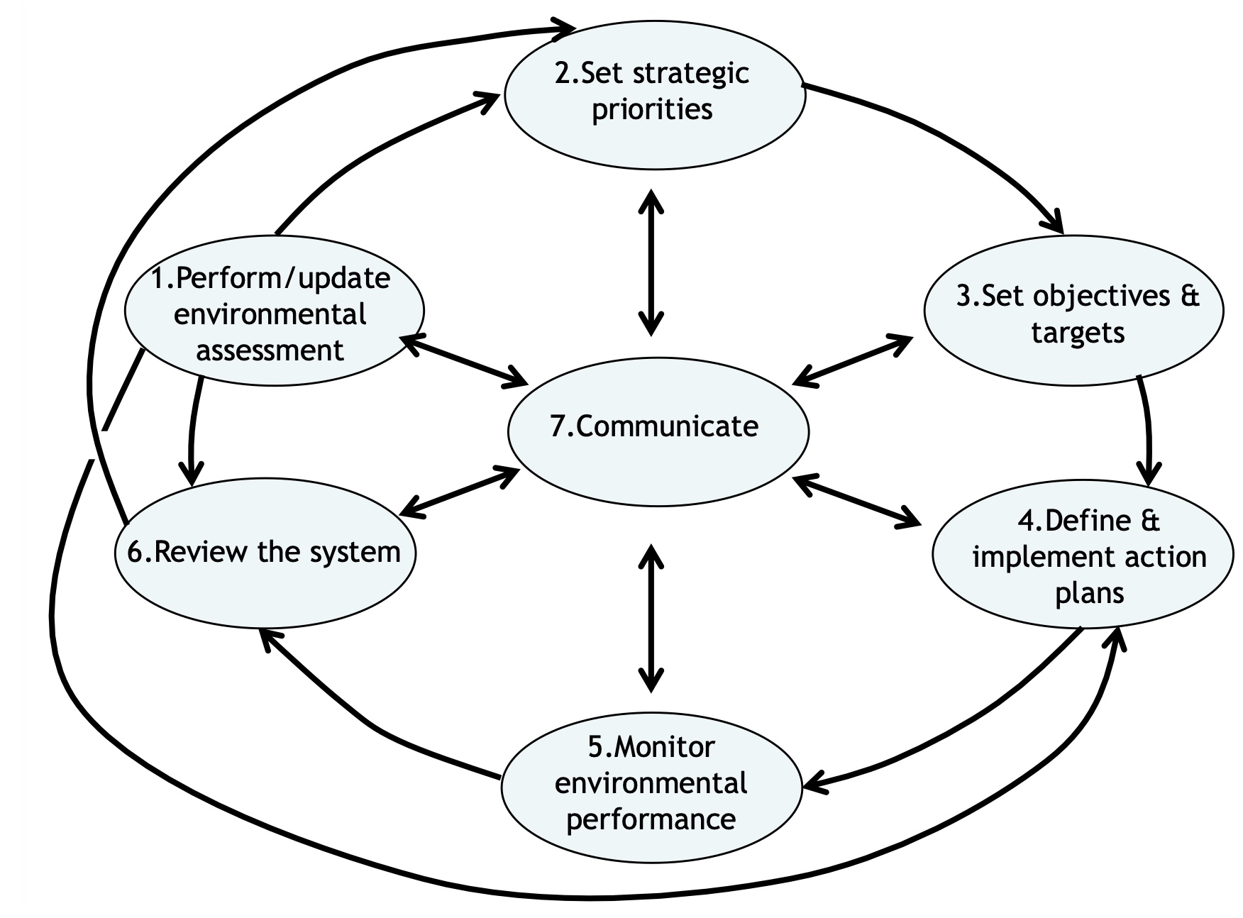 - review of context, interested parties, and scope; - determination and review of environmental aspects;